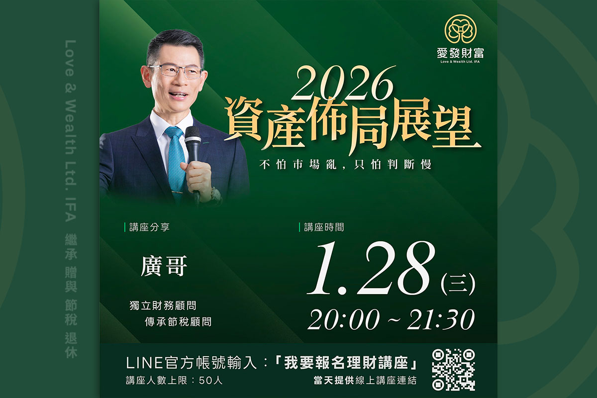 1月28日講座剖析「股市、債市、房市」的機會與風險。想在2026理財之路提煉果實,手刀報名,掌握先機。